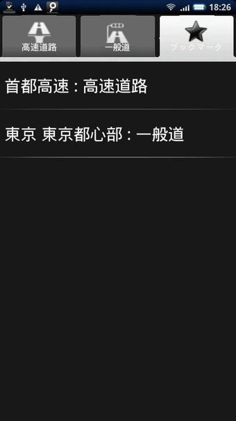 渋滞情報の便利なところは、複数の地域を「ブックマーク」として登録して、表示を切り替えられる点にあります。たとえば、「普段は都心に住んでいて、休日には実家のある福島まで出掛ける」という場合、「東京都心部」に加えて「福島・群馬・栃木・茨城」をブックマークに登録しておきましょう。こうすることで、首都高速と東北自動車道の渋滞情報を、簡単に呼び出せるようになります。